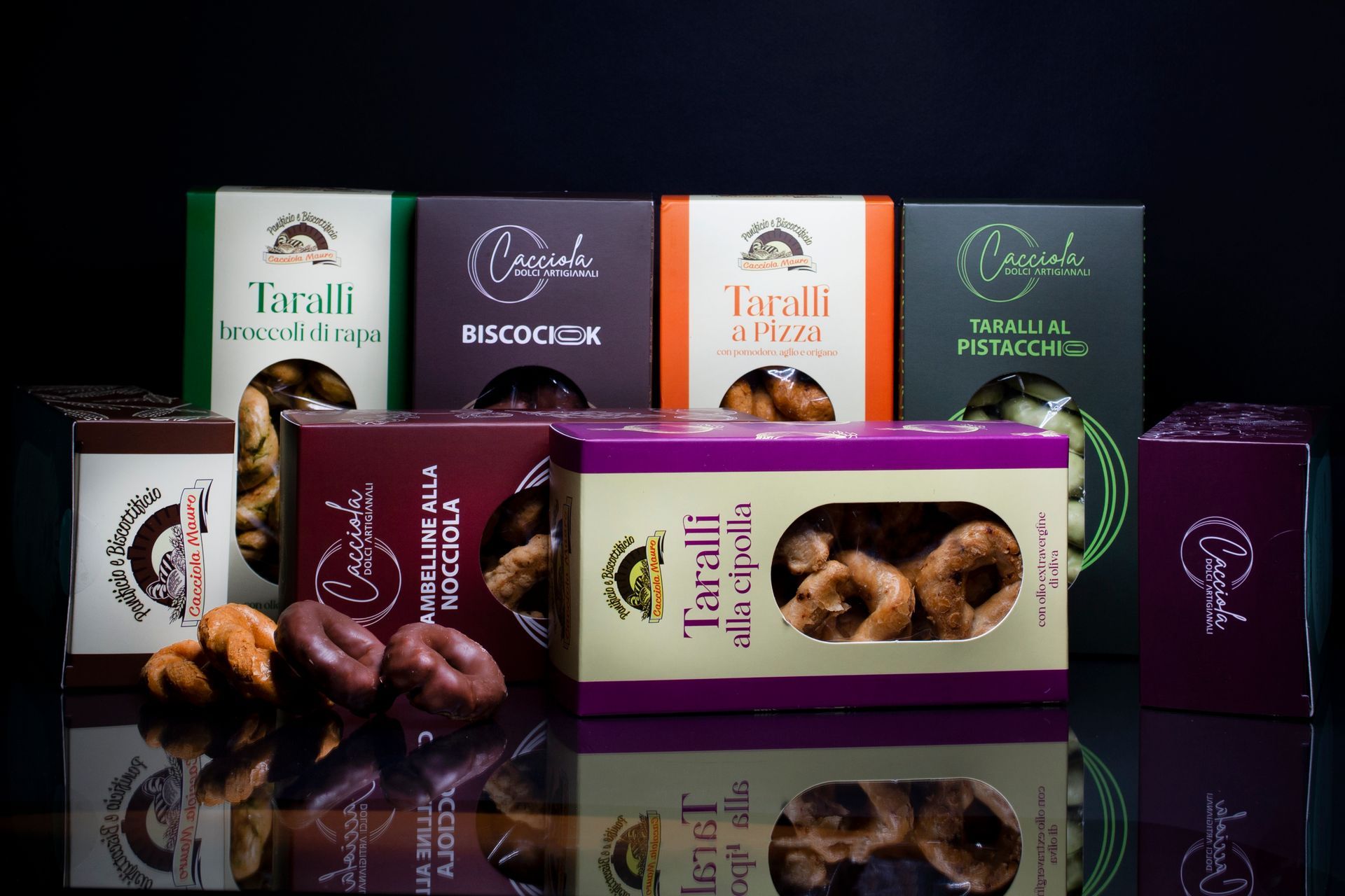 Il Biscottificio Cacciola Mauro ha sviluppato negli anni una linea estremamente ampia di taralli aromatizzati, tutti rigorosamente prodotti con ingredienti naturali e senza l’utilizzo di conservanti artificiali. Questa scelta nasce dal desiderio di offrire varietà, ma anche autenticità: ogni aroma deve essere vero, riconoscibile, pulito. Ad oggi produciamo oltre 10 gusti diversi, frutto di una selezione accurata di materie prime e abbinamenti studiati. Ecco alcune delle nostre varianti principali, tutte realizzate con ingredienti semplici, naturali e miscelati senza additivi: - Finocchietto con olio extravergine d’oliva - Taralli con semola di granoduro - Carbone vegetale attivo - Integrali - Multicereali - Broccoli di rapa - Pizzaiola - Peperoncino - Cipolla - Olive nere - Rosmarino - Frutti di bosco - Paprika Ogni sapore viene studiato tenendo conto del profilo aromatico: spezie essiccate, erbe mediterranee, farine alternative, oli naturali, estratti vegetali. Nulla di artificiale, nulla di chimico. La nostra filosofia produttiva punta alla genuinità: un tarallo deve essere semplice, naturale, digeribile, ma anche ricco di personalità. Per questo motivo curiamo la tostatura, le percentuali degli ingredienti e la qualità delle materie prime. L’obiettivo è proporre una gamma completa, capace di soddisfare palati diversi: da chi ama i gusti classici, fino a chi preferisce aromi più decisi o varianti salutari. Una produzione così ampia, naturale e specializzata rappresenta uno dei nostri punti di forza sul mercato.