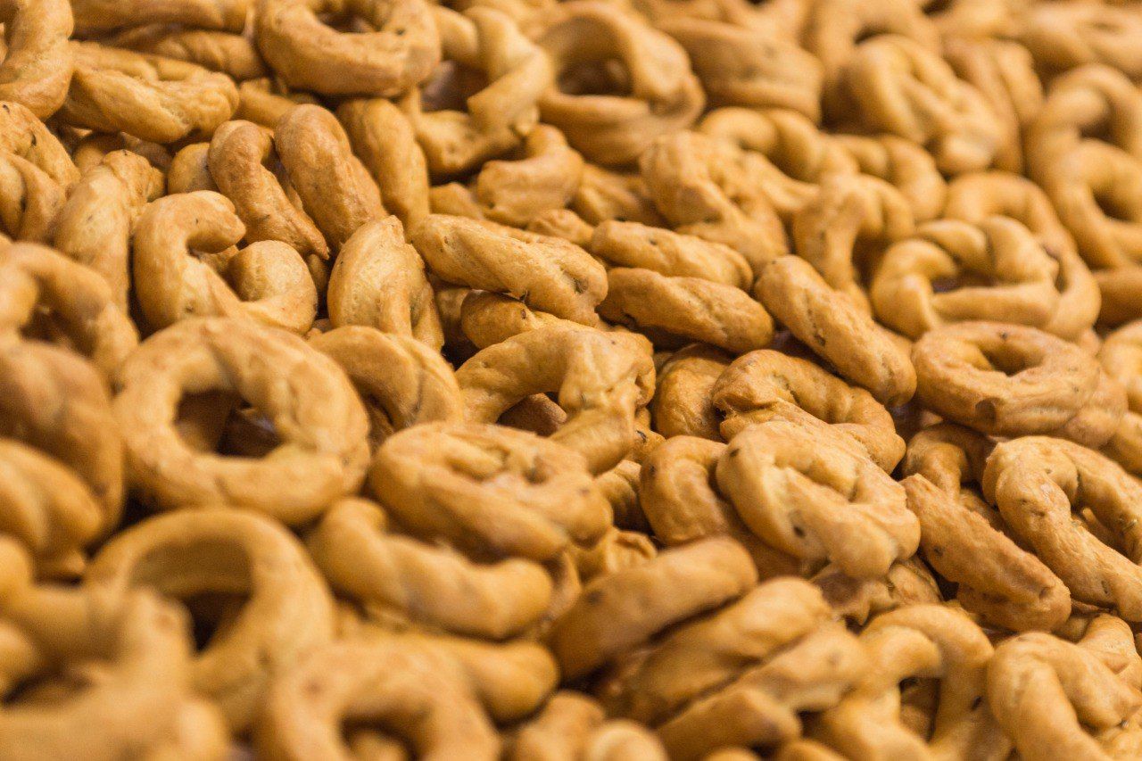 L'offerta dolce del biscottificio Cacciola non si ferma ai taralli al cioccolato, ma comprende anche squisite ciambelline alla nocciola e al vino.